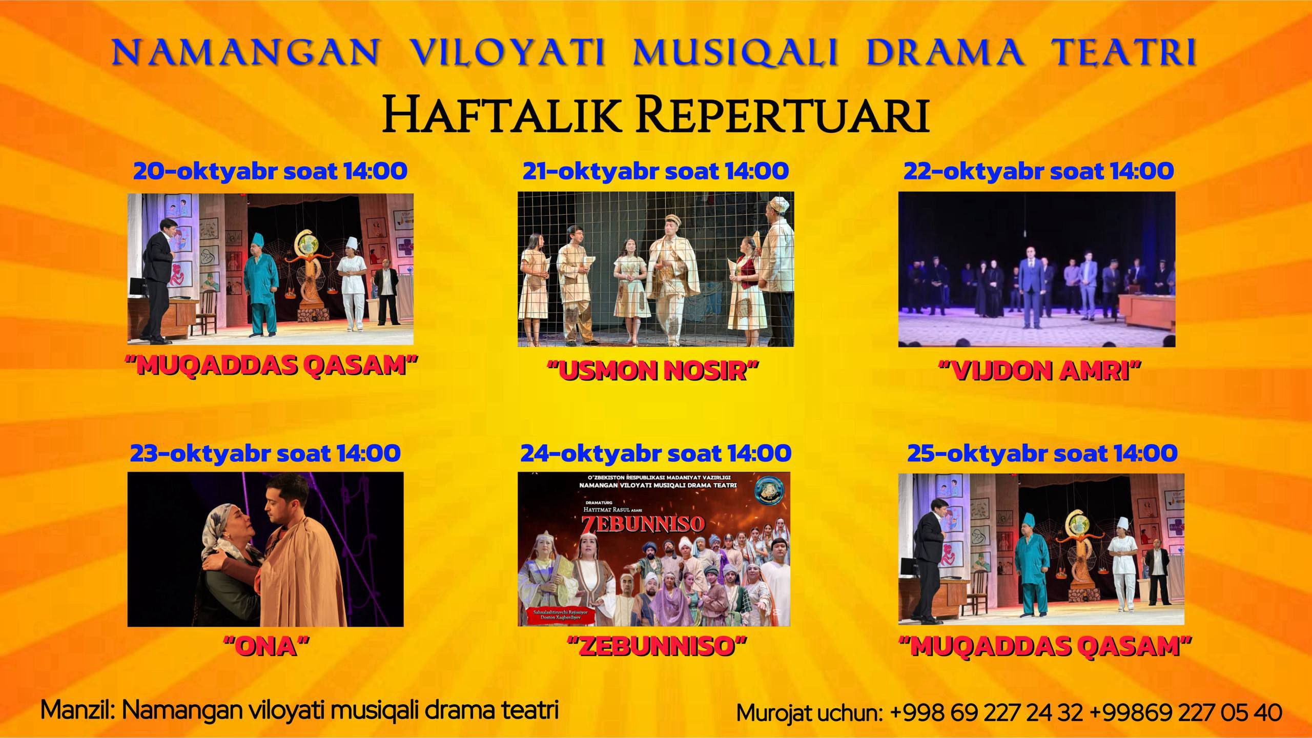 #ANONS 🎭TEATR BU- IBRATXONADIR! TEATRIMIZDA 20-25 OKTABRDAGI BU HAFTALIK SPEKTAKLLAR