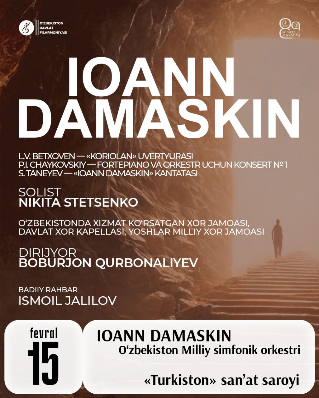 🎼 O'zbekiston davlat filarmoniyasining fevral oyidagi konsertlariga marhamat, aziz muxlislar! “IOANN DAMASKIN”. O'zbekiston Milliy simfonik orkestri