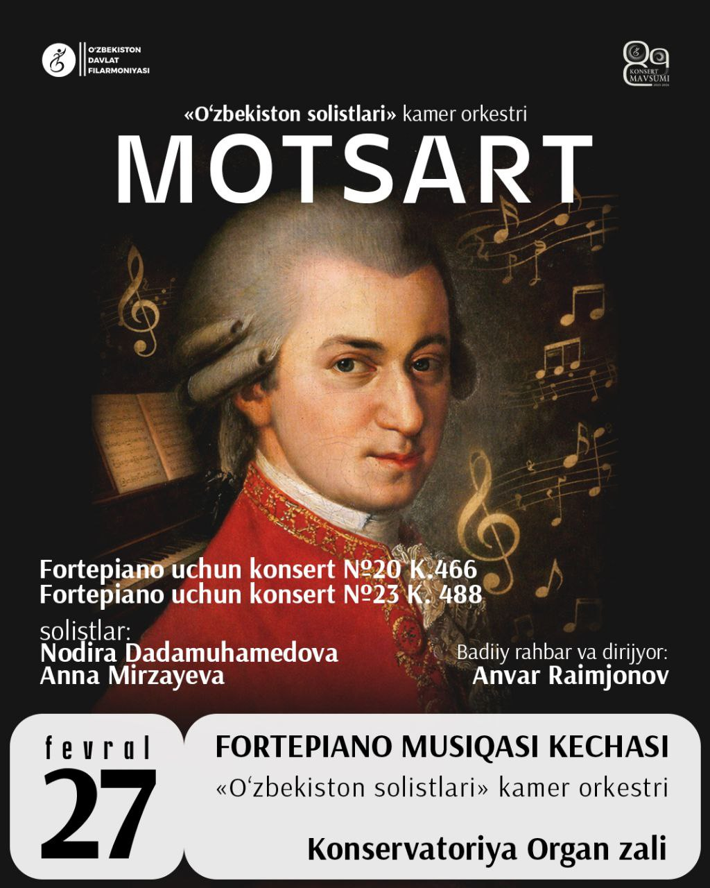 MOTSART. “FORTEPIANO MUSIQA KECHASI”. "O'zbekiston solistlari" kamer orkestri konserti.